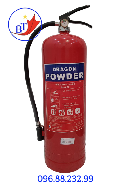 - Bình chữa cháy DRAGON loại bột MFZL8 ABC 8kg có tem kiểm định phù hợp trong các trường hợp đám cháy dầu mỏ và các chế phẩm sản phẩm dầu mỏ.