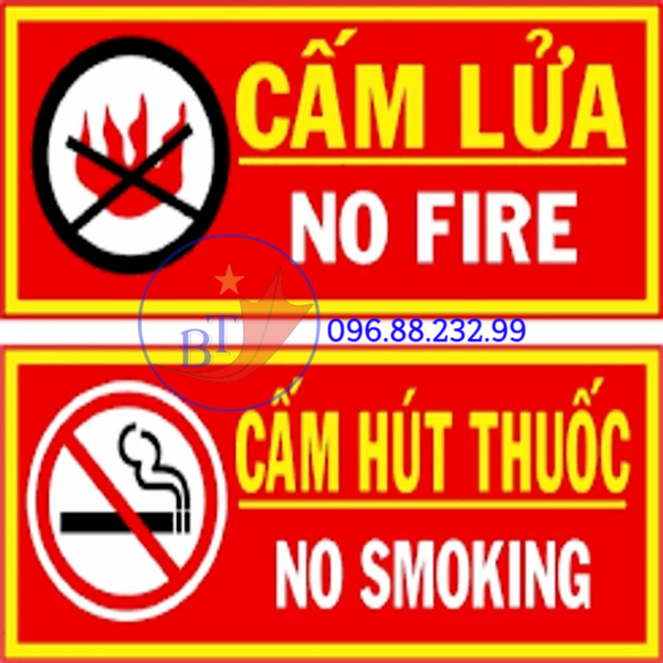 Bộ cấm lửa cấm hút thuốc gồm 2 bảng được thiết kế theo tiêu chuẩn của Bộ Công An với hình ảnh và nội dung được sơn bằng các màu thông dụng trong PCCC như màu đỏ, màu vàng, màu trắng và màu đen. Bộ cấm lửa cấm hút thuốc là loại bảng hiệu mang tính cảnh cáo được sử dụng ở nhiều nơi khác nhau, đặc biệt là những nơi có nguy cơ xảy ra cháy nổ, hỏa hoạn cao như kho hàng, xưởng sản xuất, cửa hàng tạp hóa, nơi chứa hóa chất, chất lỏng dễ cháy, ...