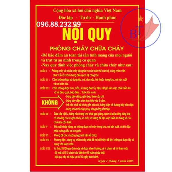 KÍCH THƯỚC CHUẨN BỘ NỘI QUY TIÊU LỆNH PHÒNG CHÁY CHỮA CHÁY
